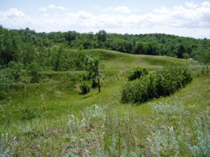 Sandhill prairies can be found on the deposits of sand that were worked by wind into dune systems. Most of the sand has been stabilized by mixed-grass prairie type species but areas of open sand do occur.